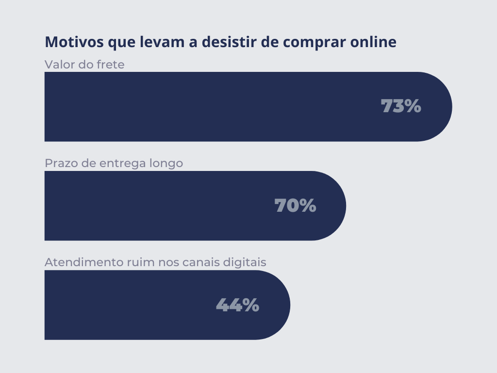 O valor do frete, prazo de entrega longo e atendimento ruim nos canais digitais são alguns dos motivos que levam os consumidores a desistirem de comprar online.